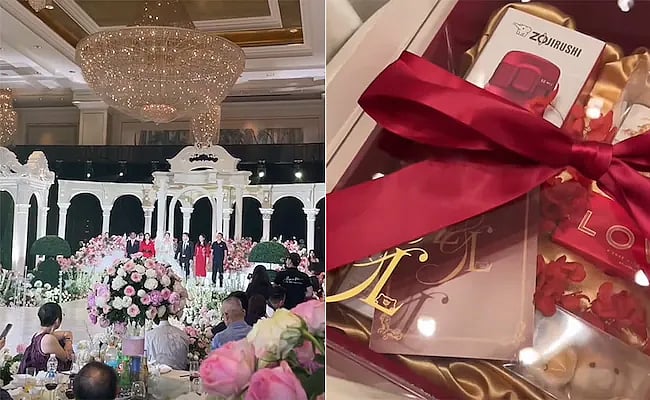 அதே நேரத்தில் அங்குச் செய்யப்பட்ட ஆடம்பரமான திருமண அலங்காரமானது ஆசியாவே ஆச்சர்யப்படும் அளவுக்கு இருந்திருக்கிறது. டெலிபோன் பூத் முதல் அனைத்துமே மலர்களால் அலங்கரிக்கப்பட்டிருந்தன. ஆச்சர்யம் என்னவென்றால் கல்யாணத்திற்கு வந்த ஒவ்வொருவருக்கும் இந்திய மதிப்பில் 66,000 ரூபாய் அன்பளிப்பாகக் கொடுக்கப்பட்டிருக்கிறது.